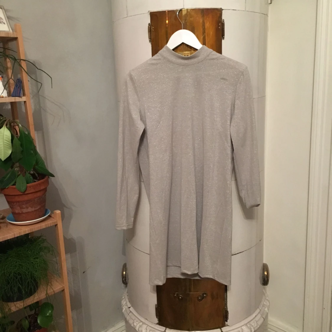 Jättefin gråglittrig klänning från weekday a-linjeformad. Fläcken på bild 3 är ingen fläck utan nån slitning i tyget. Därav det låga priset