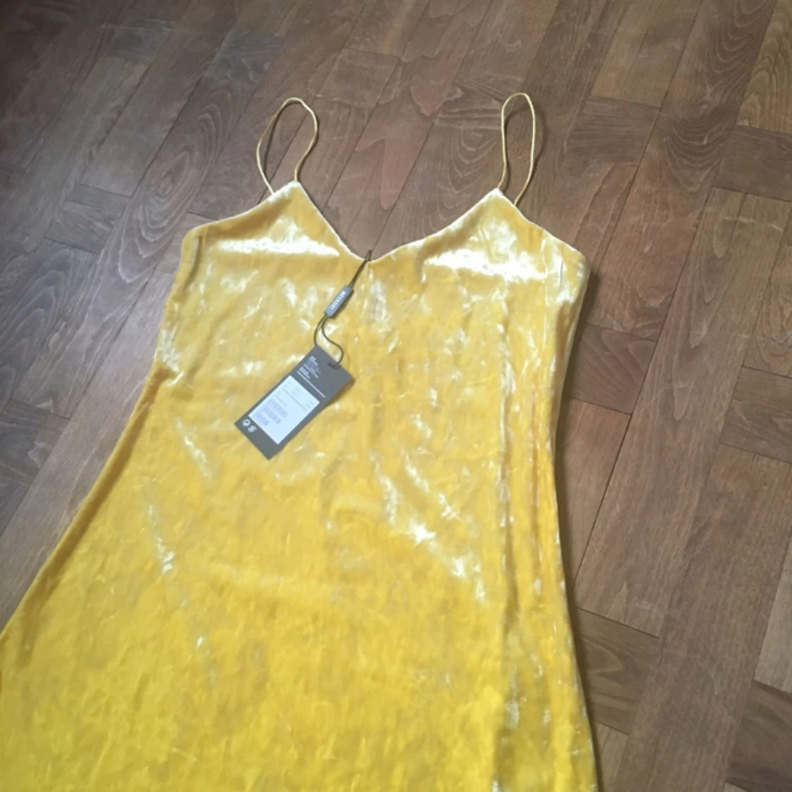 Så fin gul sammetsklänning från Weekday, helt oanvänd! Tags kvar💕 Möts upp i Stockholm eller skickar mot frakt som köparen står för 👻