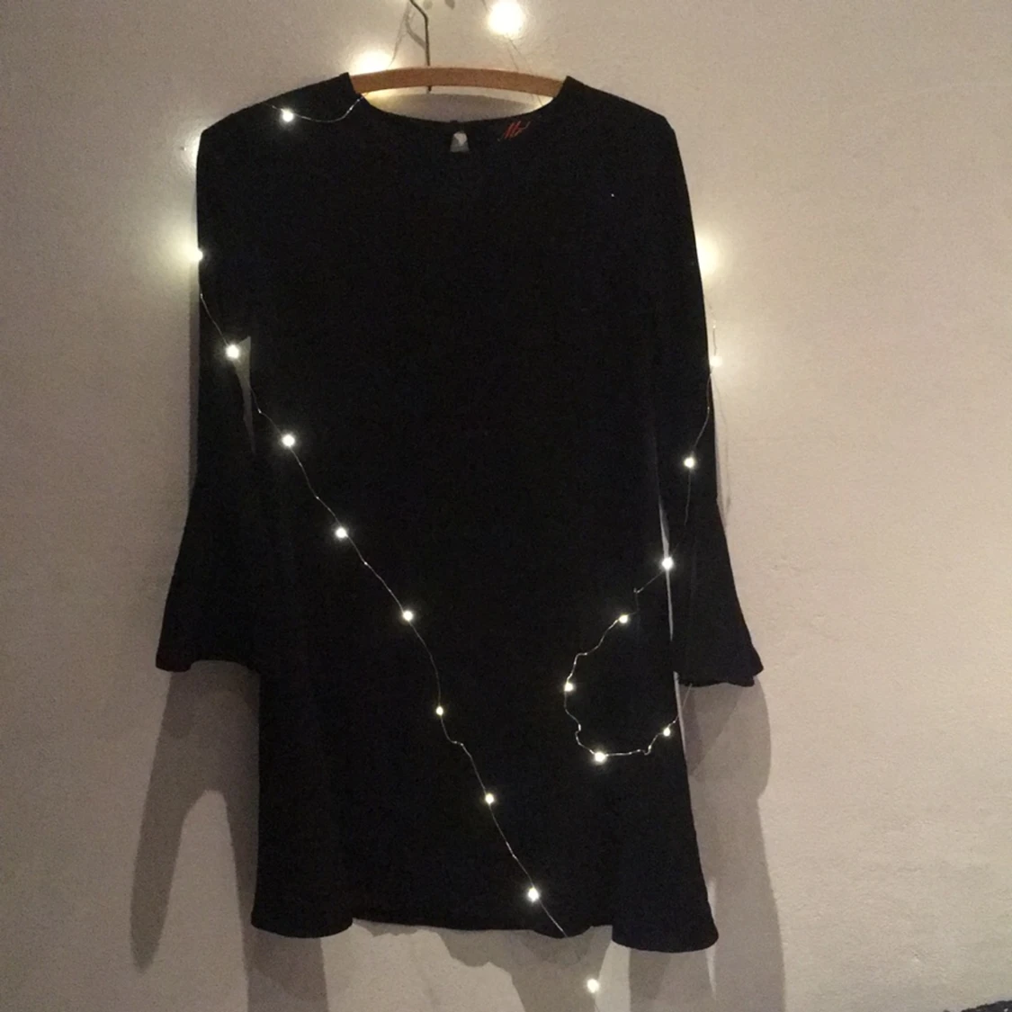 Svart klänning med utsvängda arma. Jättefin A-form på klänningen, fint fall. Står S men skulle säga att den är lite på gränsen till XS. Köpare står för frakt!