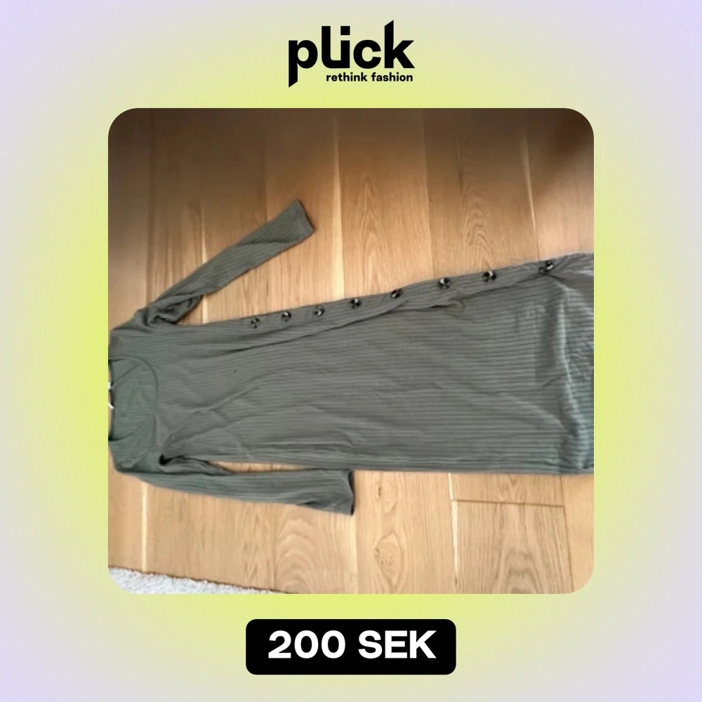 Skit snygg grön klänning med slits på sidan går även att knappa upp knapparna🤎 använd vid ett tillfälle, bra skick o inga skador 🤎