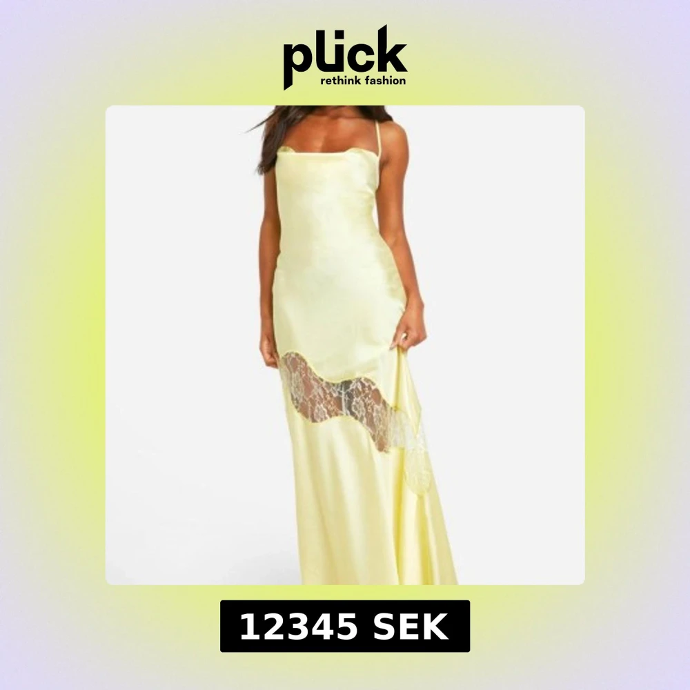 SÖKER - Ljusgul långklänning med spetsdetalj