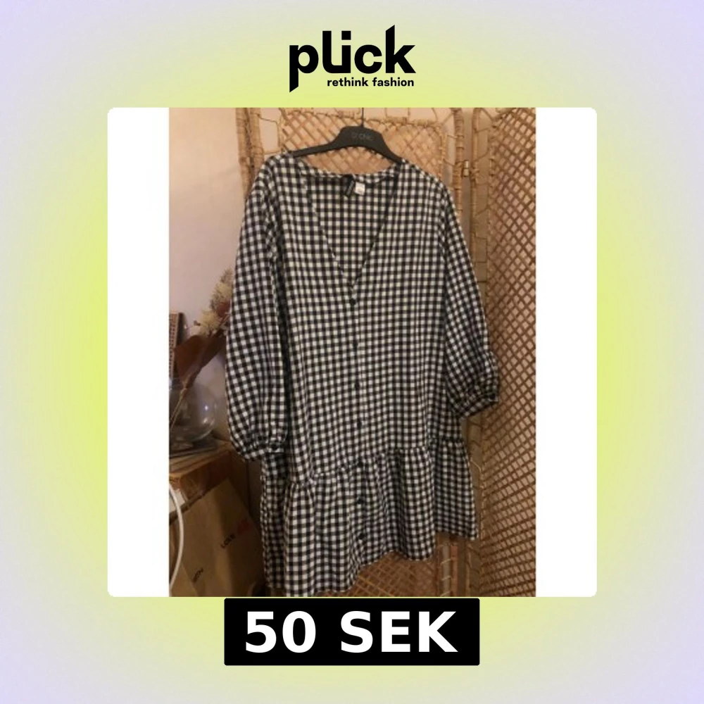 Supersöt svartvit rutig kortklänning från H&M Divided. Klänningen har v-ringning, knappar framtill och trekvartsärmar med resår. Den har en avslappnad passform och volang nedtill, perfekt för en chill och trendig look.
