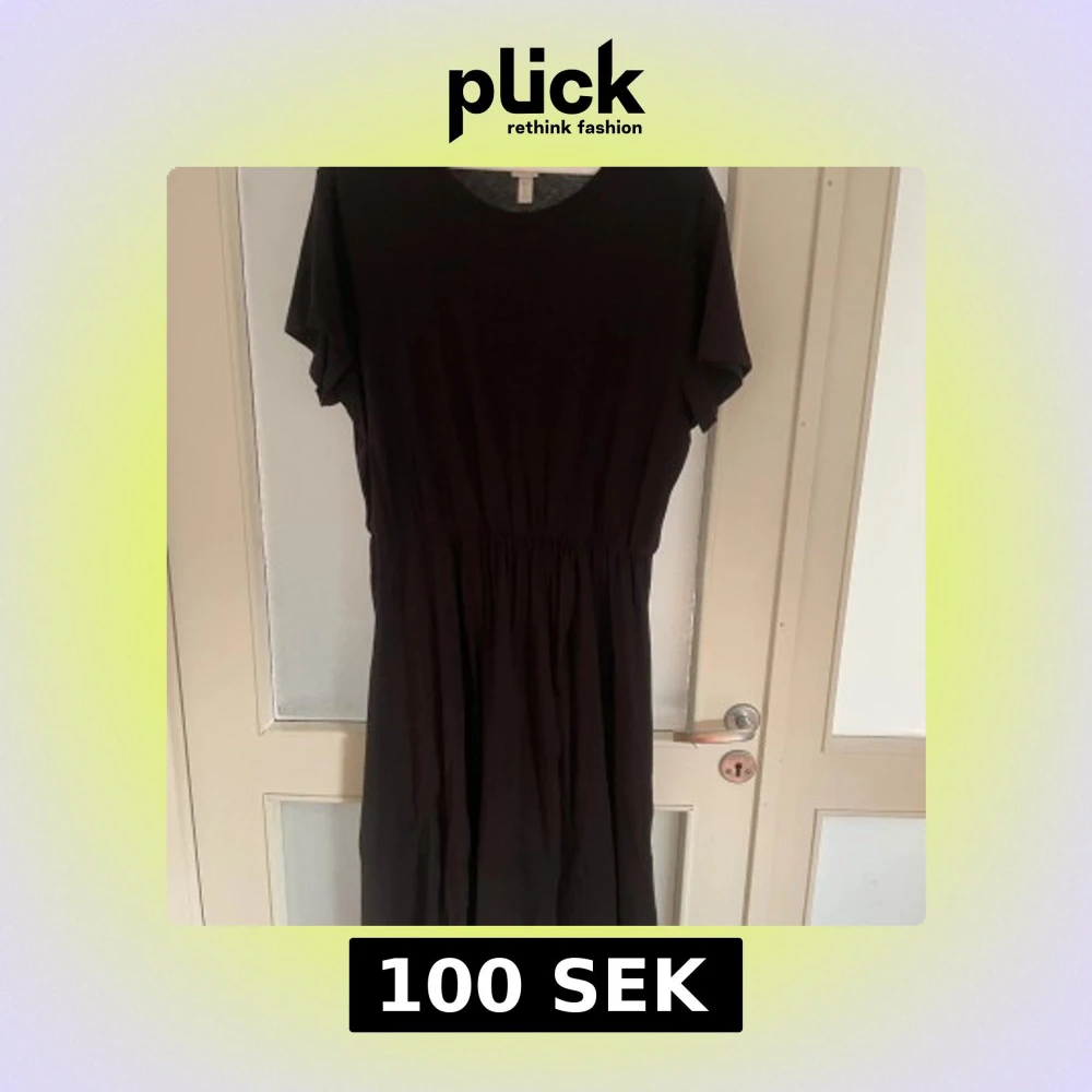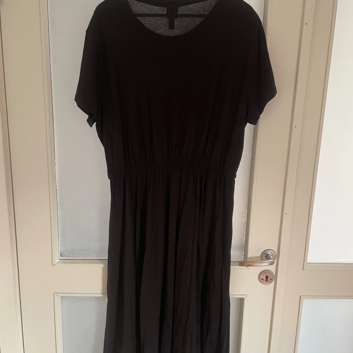 Svart långklänning från H&M L.O.G.G i storlek XL. Klänningen har rund halsringning, korta ärmar och ett elastiskt midjeparti som ger en snygg siluett. Tillverkad i mjuk bomull som känns skön mot huden. Perfekt för dig som gillar enkel och stilren design.