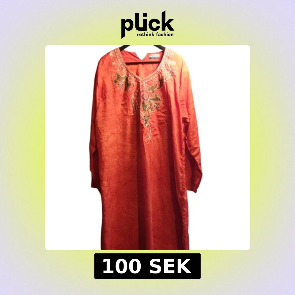 Säljer en vacker lång klänning från MSZ med detaljerat broderi i grönt och vitt. Klänningen har en v-ringad hals och långa ärmar. Perfekt för en unik stil.
