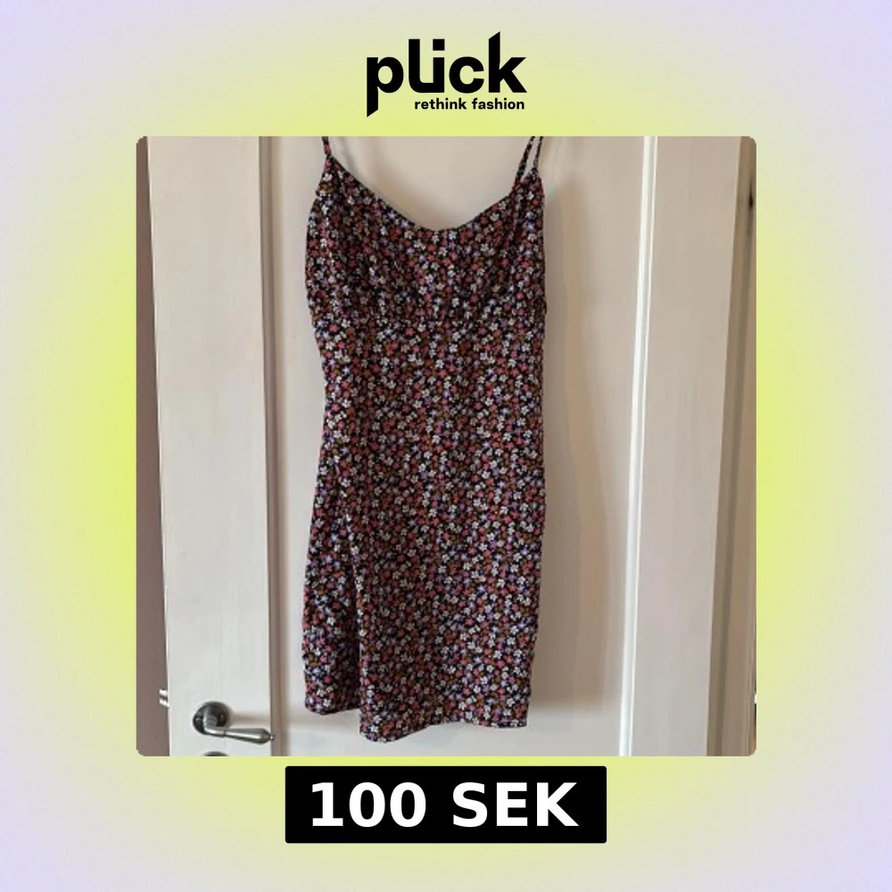 Säljer en söt blommig kortklänning från Noisy May med smala axelband. Klänningen har ett färgglatt blommönster i rosa, lila, vitt och brunt på svart botten. Perfekt för varma dagar och enkel att styla med sneakers eller sandaler.