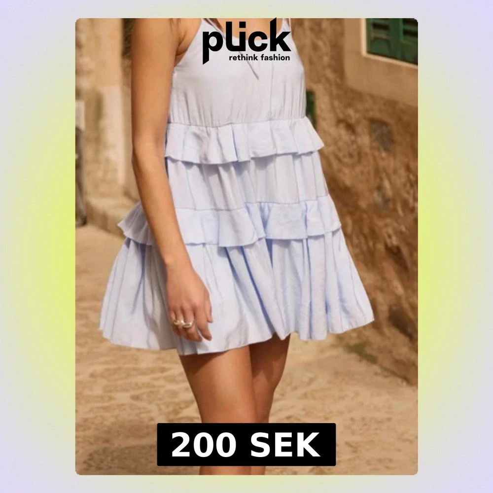 Söt ljusblå kortklänning med flera volanglager och tunna axelband. Klänningen har en luftig passform och är perfekt för varma dagar. Tillverkad i ett lätt bomullsmaterial som känns skönt mot huden.