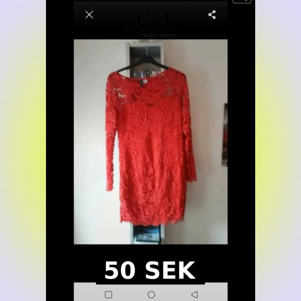 Röd spetsklänning med lång ärm