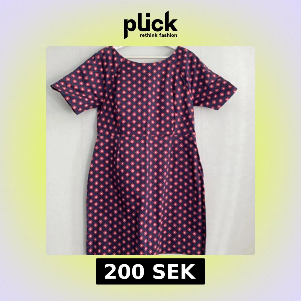 Snygg klänning från Pernilla Wahlgren med ett färgglatt mönster i rött och blått. Klänningen har korta ärmar och en rund halsringning. Perfekt för en färgglad look!