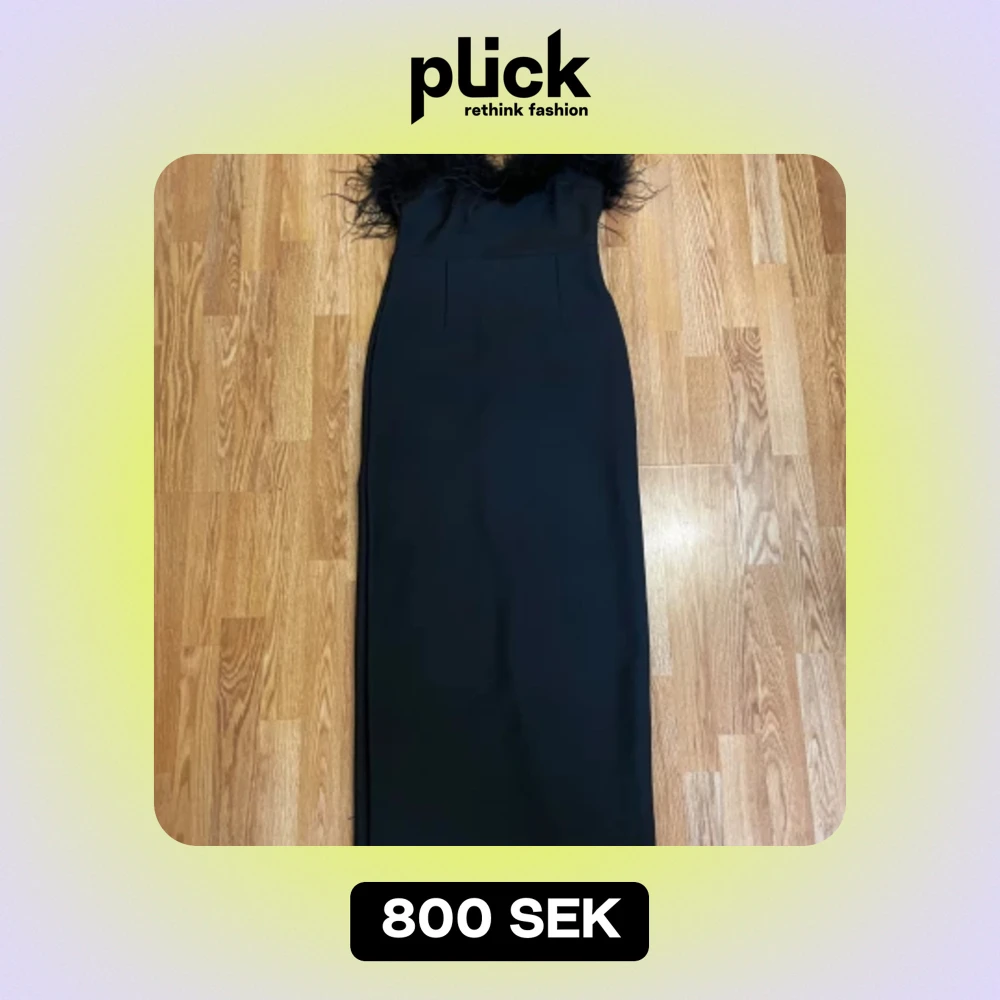 Superfin klänning med fjäder långtuppe vid brösten. 👌klänningen har använts 1 gång och är i storlek XL men kan användas som L