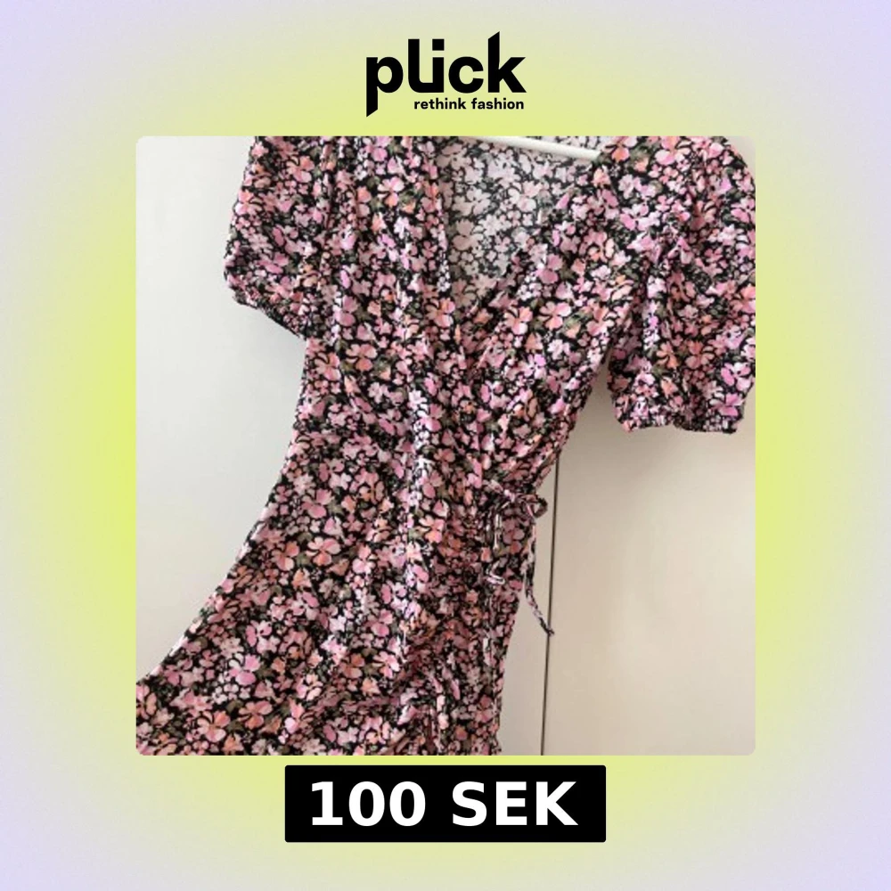 Superfin kort omlottklänning med blommigt mönster i rosa, vit och svart. Tyvärr för liten för mig!