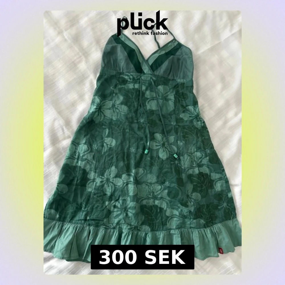 Supersöt grön kortklänning från edc med blommigt mönster, tunna axelband och omlott-ringning. Klänningen har volangkant nertill och knytband i midjan. Perfekt för varma dagar och har en lätt, luftig känsla tack vare materialet i bomull.