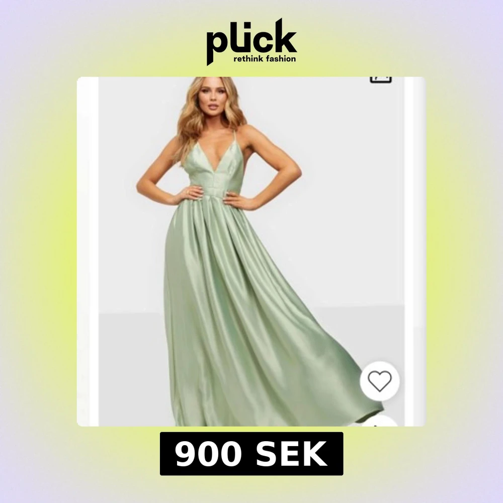 Elegant grön långklänning i satin med djup v-ringning och smala axelband som aldrig använts. Klänningen har en jättefin färg och en snygg passform i ryggen. Perfekt till vårens bal!