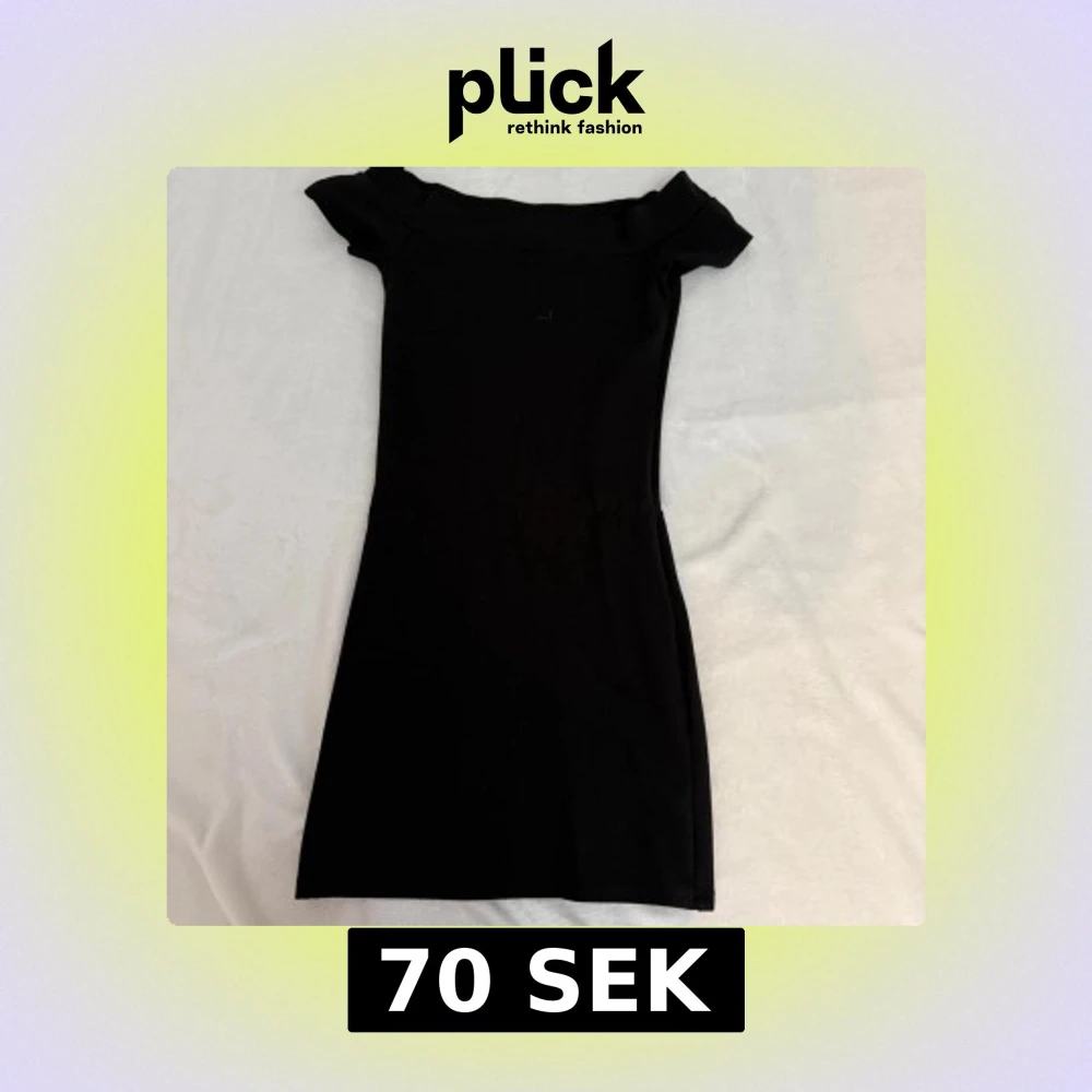 Säljer en svart, tight offshoulder klänning med kort längd. Klänningen har en enkel och stilren design med volangdetalj upptill. Perfekt för dig som gillar en klassisk look med en twist.