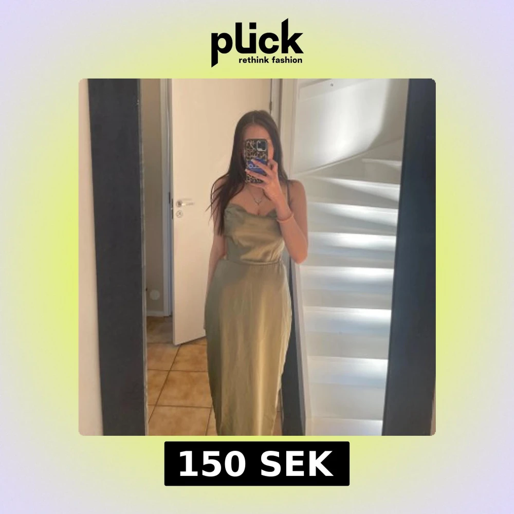 Säljer en olivgrön långklänning med draperad urringning och smala axelband. Klänningen har en elegant öppen rygg och är tillverkad i ett glansigt material som ger en lyxig känsla. Perfekt för speciella tillfällen.