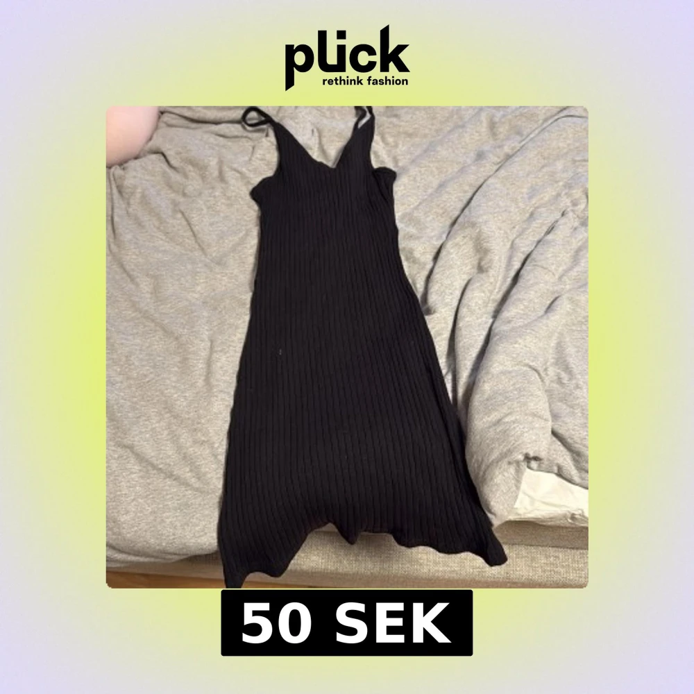 Svart ribbad klänning XS