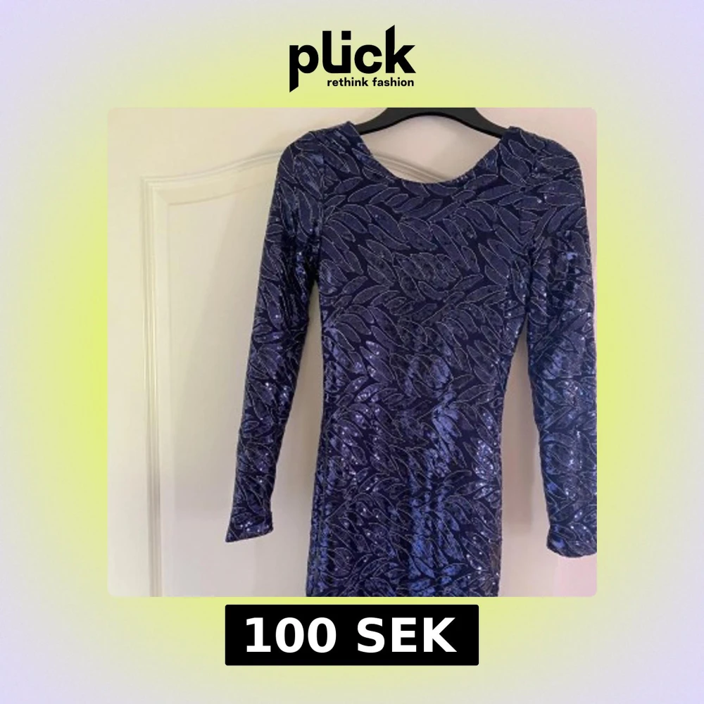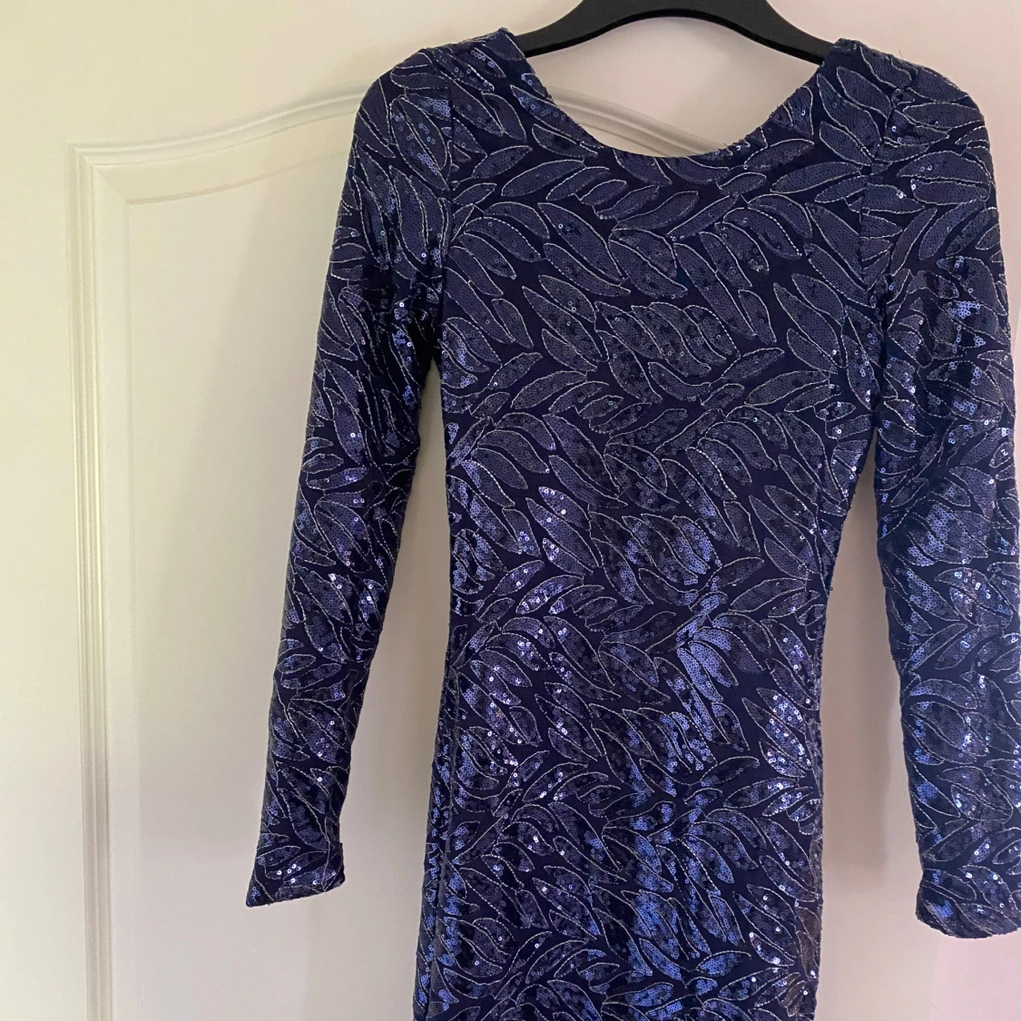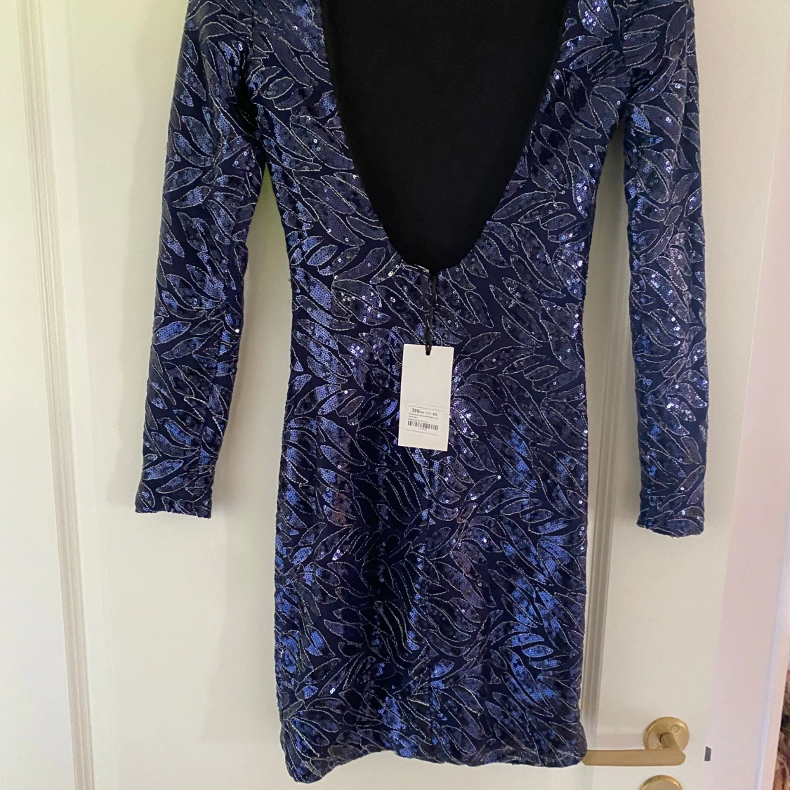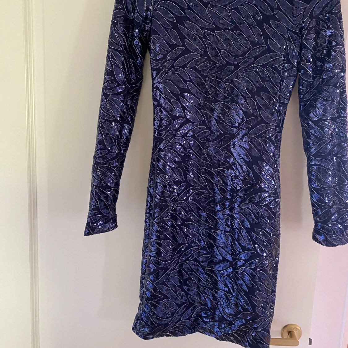 Säljer en midnattsblå kort klänning från Make Way med glittriga paljetter och mönster. Klänningen har lång ärm och en djup, öppen rygg som ger en riktigt snygg look. Perfekt för dig som vill sticka ut med stil! Klänningen är köpt för 399kr men säljs för 100kr. Prislappen är fortfarande på och klänningen är oanvänd.