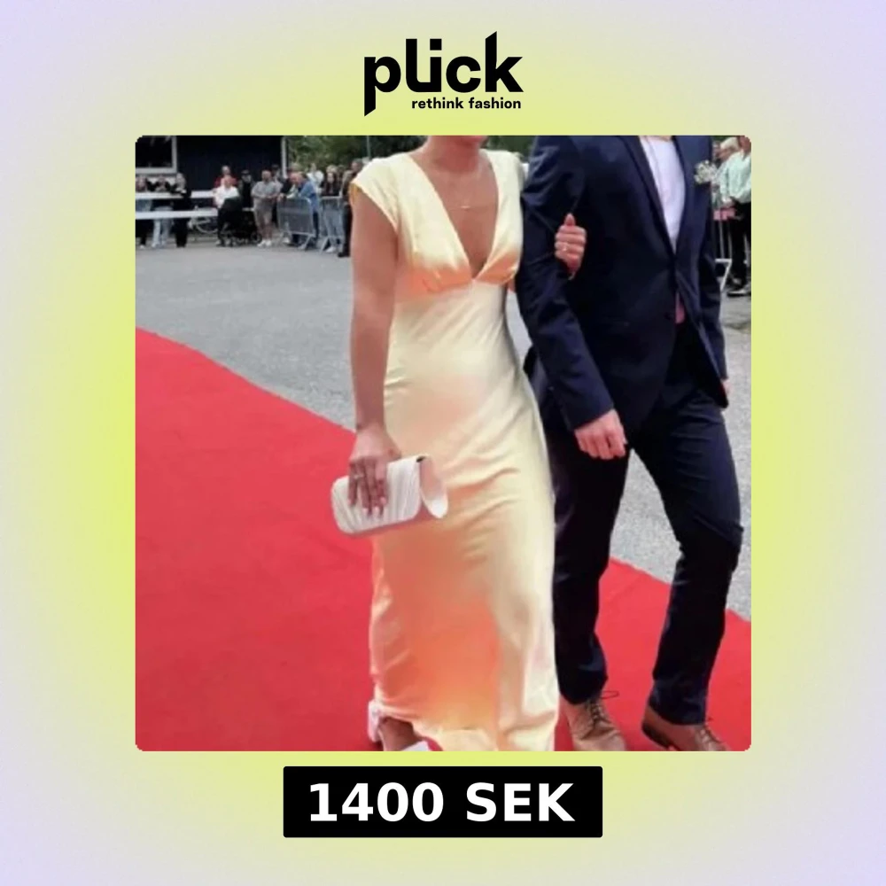 gul klänning som bara används en gång. sitter som en storlek xs. pris kan diskuteras