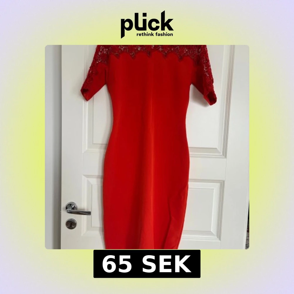 Säljer en röd klänning från Zara Woman med vacker spets upptill och på ärmarna. Klänningen har en rak passform, halvärmar och är knälång. Perfekt för dig som vill sticka ut med en färgstark look.