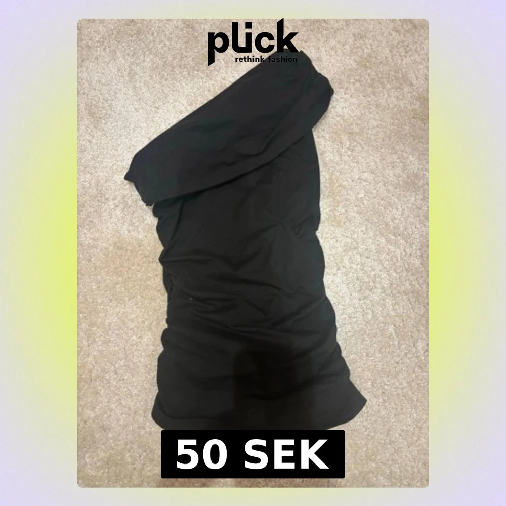 Snygg svart tröja med oneshoulder-design. Klänningen har en åtsittande passform och är gjord i ett mjukt tyg som känns bekvämt mot huden. Perfekt för dig som vill ha en stilren och trendig look.