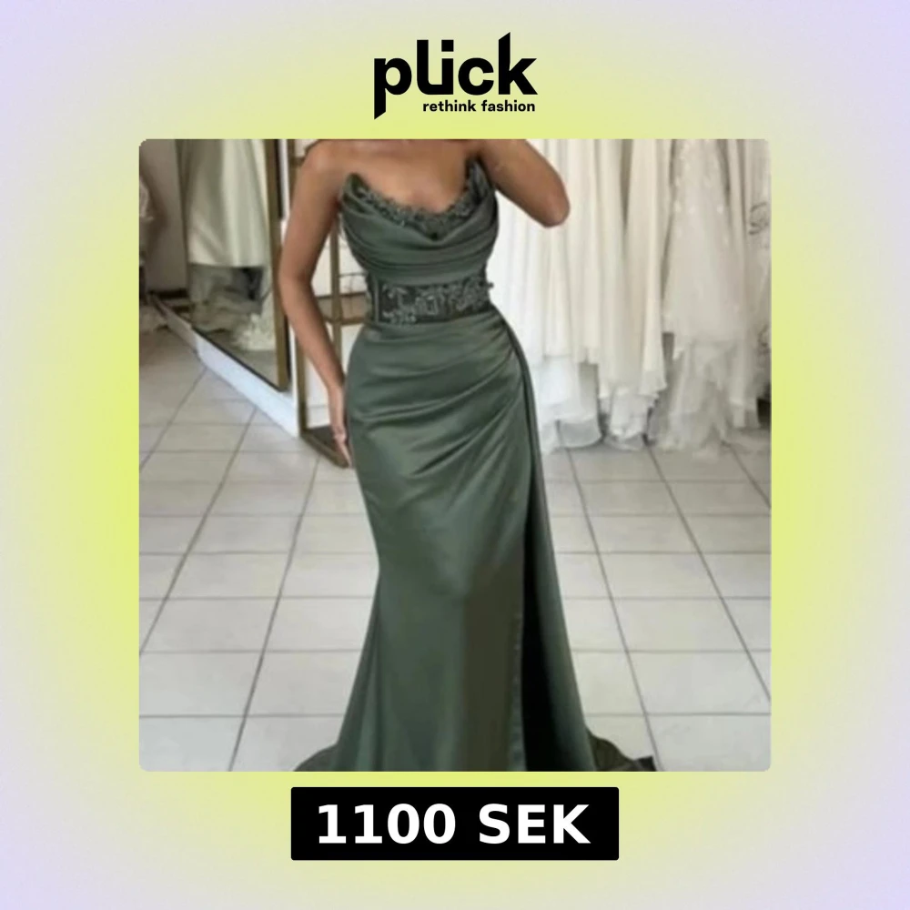 Elegant långklänning i djupgrön nyans med draperad överdel och vacker spets vid bysten och midjan. Klänningen har en figurnära passform, slits framtill. Storlek 38 men insydd till xs! Använd endast en gång