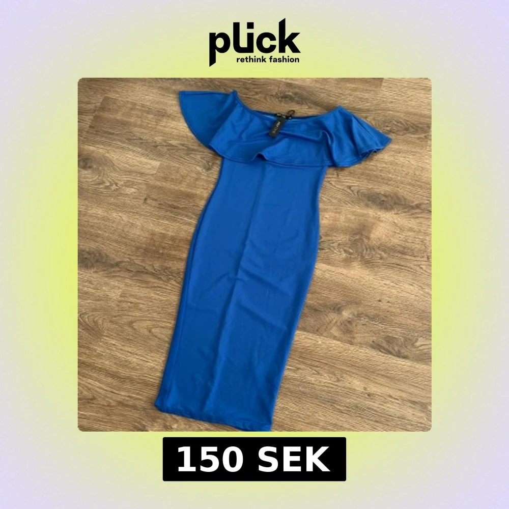 Snygg blå offshoulder klänning från NLY One med volangdetalj. Perfekt för en stilren look. Klänningen har en smickrande passform och är tillverkad i ett mjukt material.