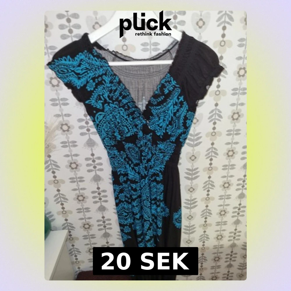 Svart långklänning med blått mönster
