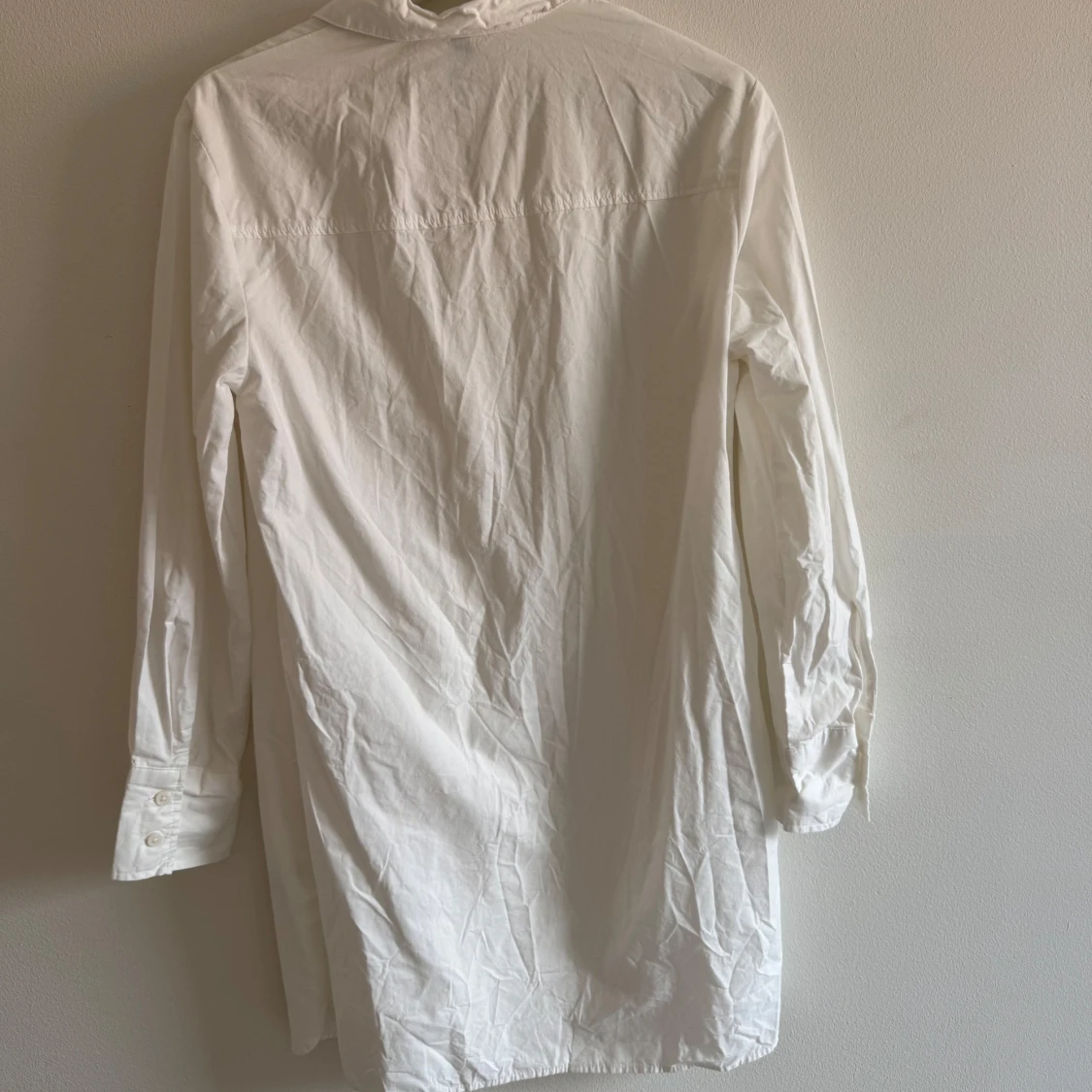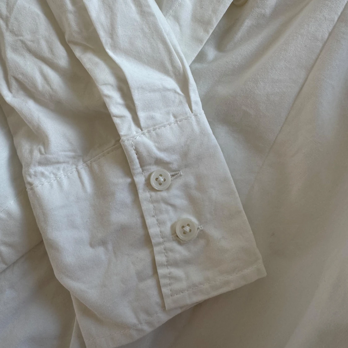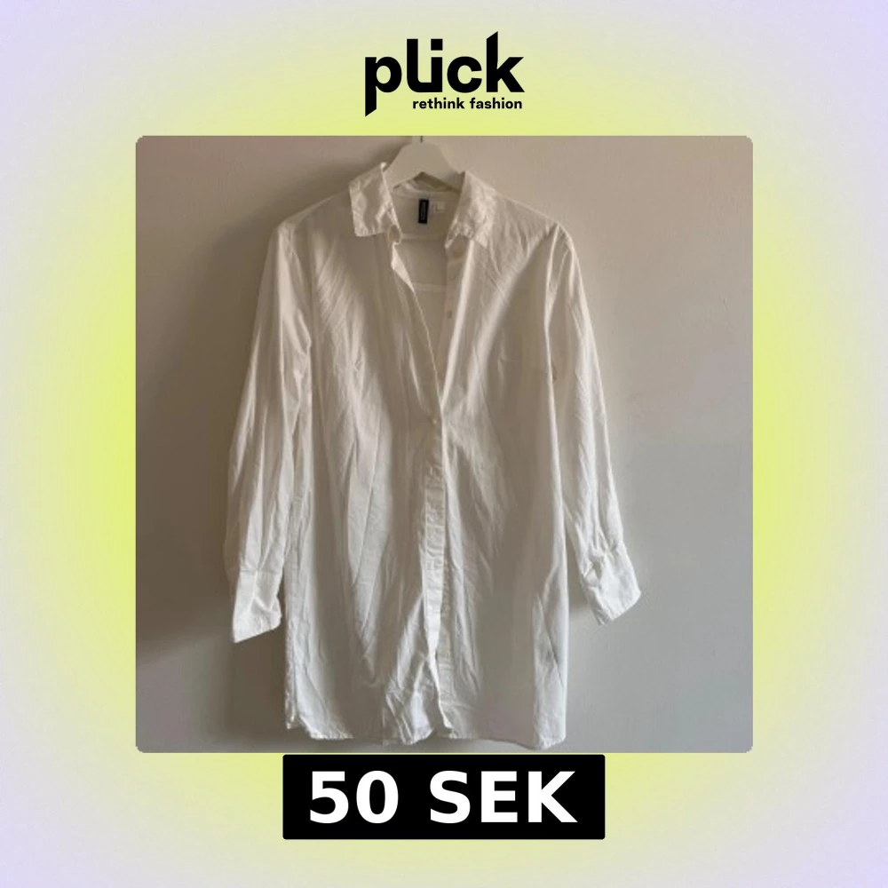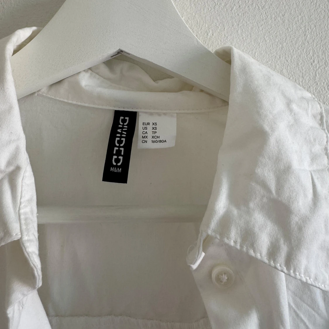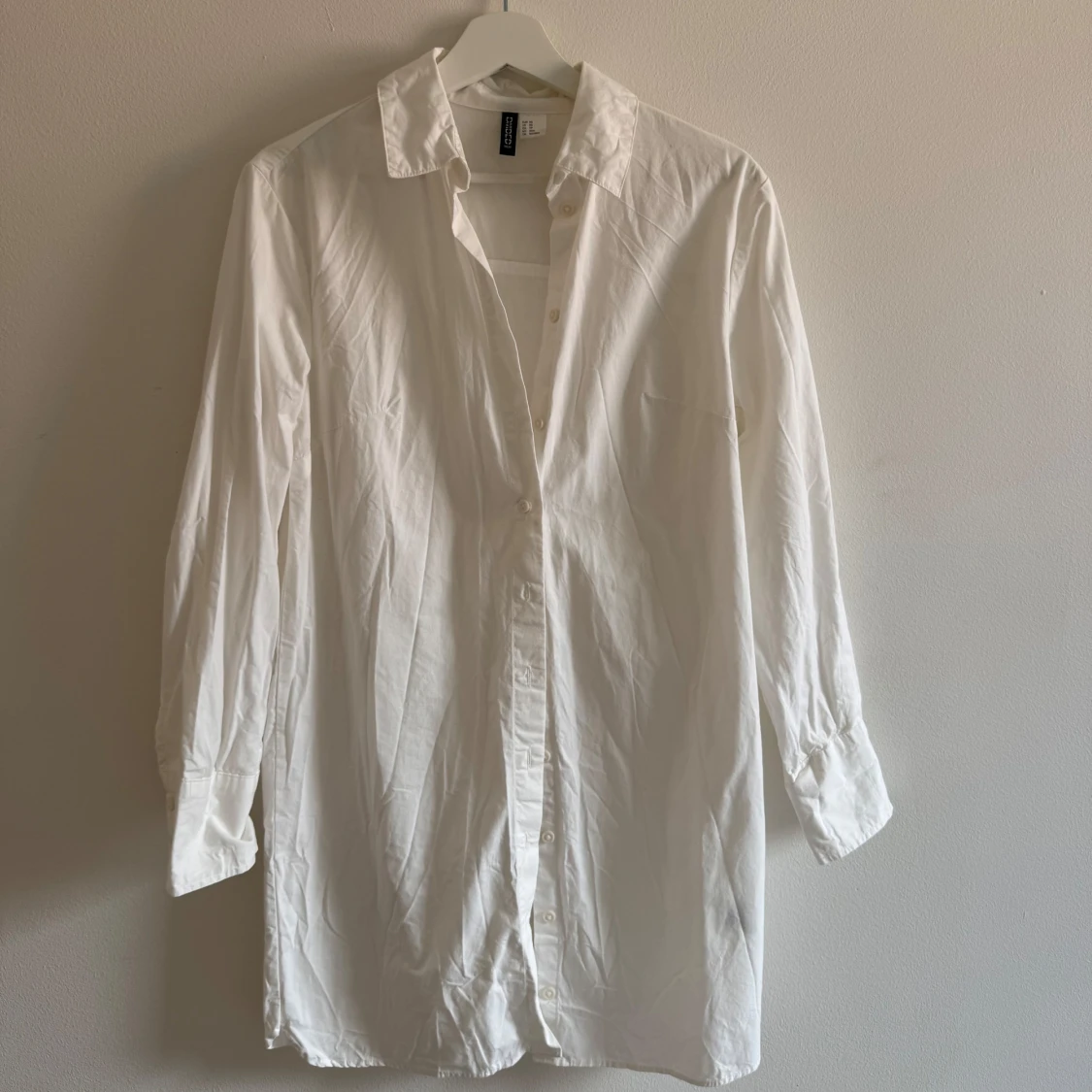 Klassisk vit skjortklänning från H&M Divided i bomull. Skjortan har lång ärm, knappar framtill och vid manschetten samt en rak passform. Perfekt att styla oversized eller som lager-på-lager. Enkel och stilren design som funkar till många looks. Varsamt använd, ser inga skavanker. Jag har massor av artiklar till salu! Köp flera och få rabatt!