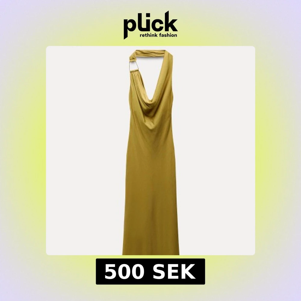 Olivgrön långklänning med draperad hals
