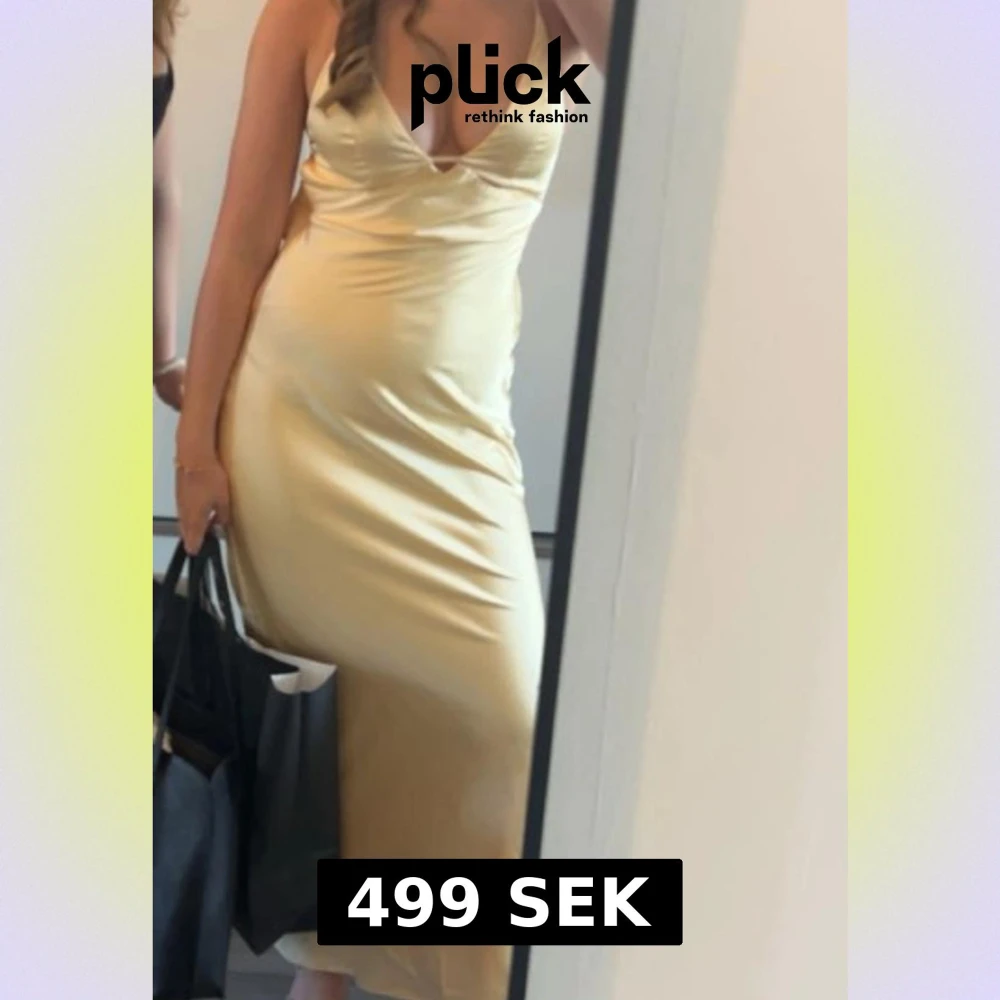 Säljer en elegant champagnefärgad långklänning med djup v-ringning och smala axelband. Klänningen har en figurnära passform och är gjord i glansigt satinmaterial som ger en lyxig känsla. Klänningen är öppen i ryggen och i storlek xs-s skriv om ni vill ha fler bilder!❤️ priser går att diskuteras och den är endast andvända vid ett tillfälle