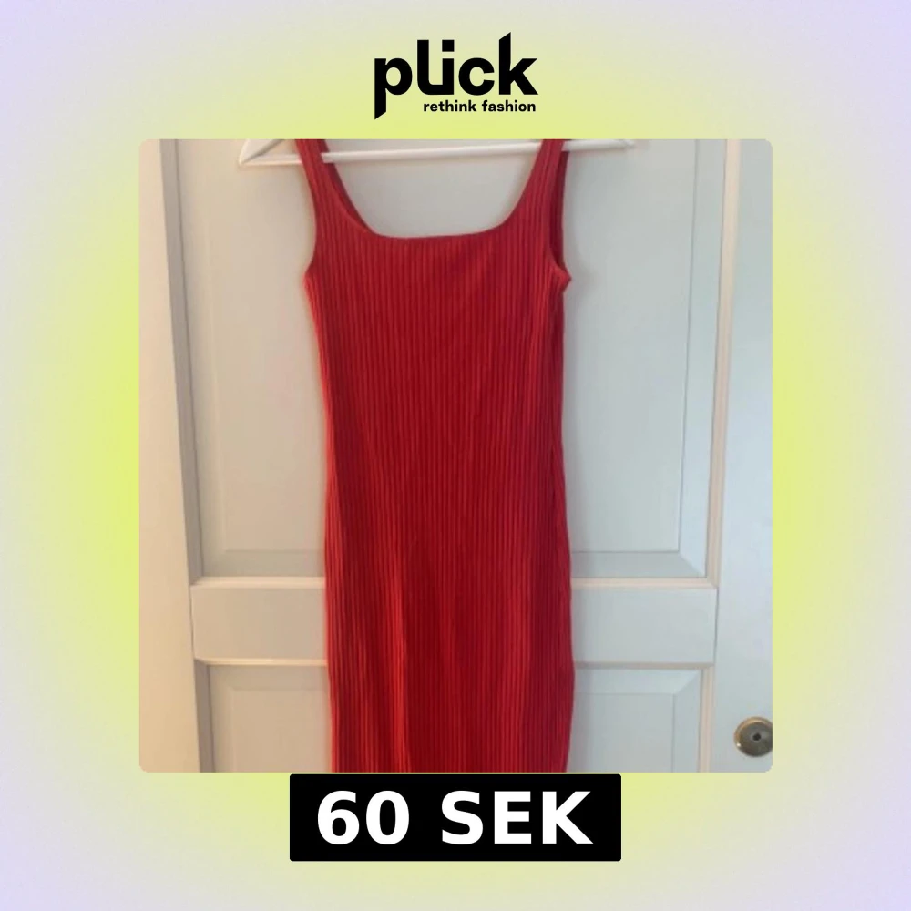 Snygg röd ribbad klänning från H&M Divided i figurnära modell. Ärmlös med breda axelband och fyrkantig ringning. Perfekt för dig som gillar enkel men trendig stil.
