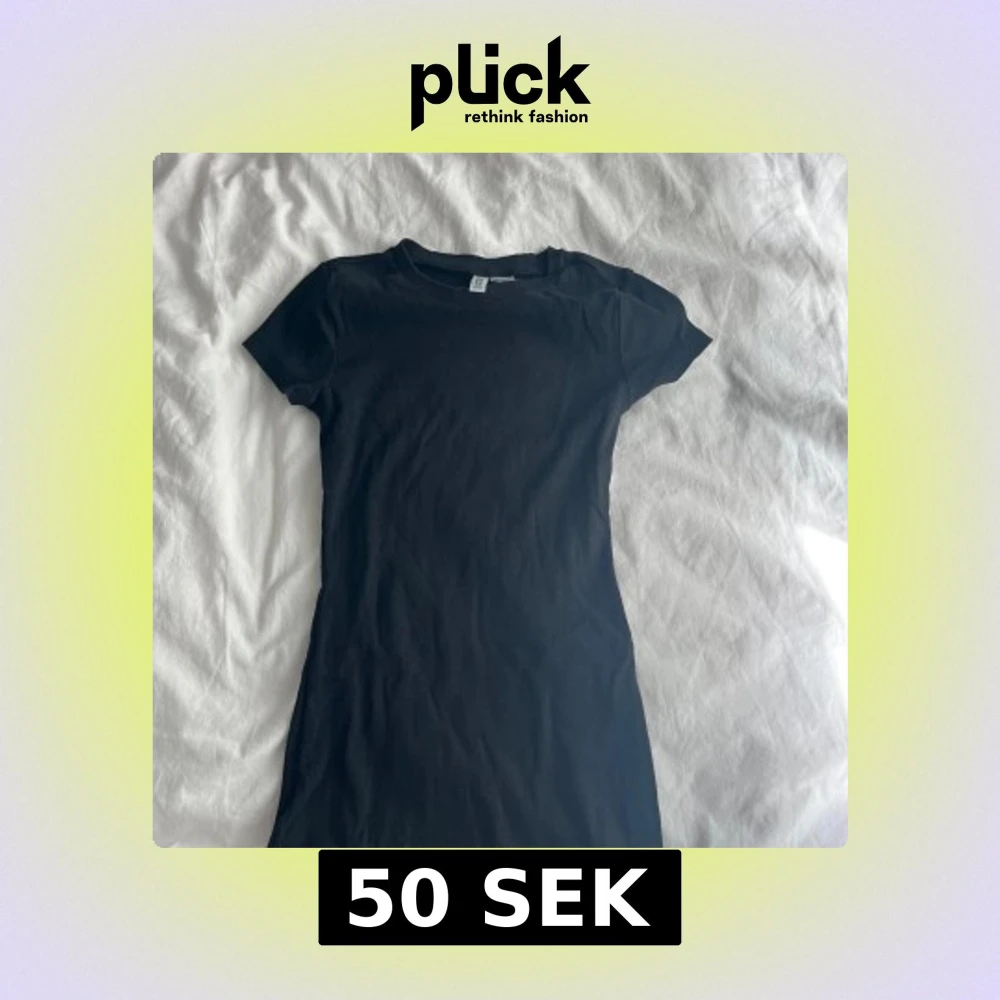 Enkel och stilren svart kortklänning från H&M Divided. Klänningen har rund halsringning, korta ärmar och är i en ribbad bomullsblandning som sitter snyggt och bekvämt. Perfekt basplagg att styla på många olika sätt.
