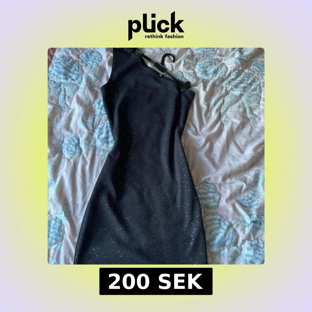 Snygg svart klänning med glittrande detaljer. Den har en oneshoulder-design som ger en trendig look. Perfekt för en kväll ute eller en speciell tillställning.