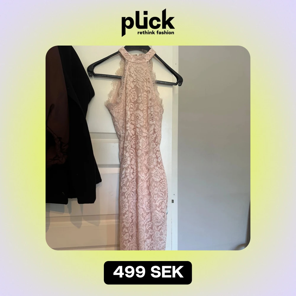Säljer en superfin ljusrosa spetsklänning. Klänningen är ärmlös och har en hög halsringning, perfekt för sommarens fester eller en romantisk middag. Den är i mycket bra skick.