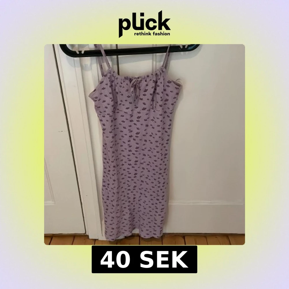 Supersöt ljuslila kortklänning från Stories i storlek XS. Klänningen har smala axelband, ribbad struktur och ett litet knyt framtill. Blommigt mönster i lila över hela klänningen ger en fräsch vibe. Perfekt för varma dagar och sommarhäng.