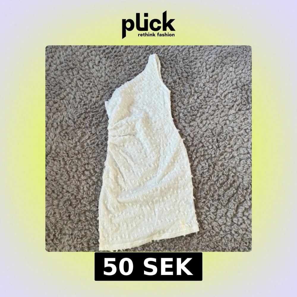 Säljer en vit one shoulder klänning i kort modell. Klänningen har ett diskret strukturerat mönster i tyget och är figurnära. Perfekt för dig som vill ha en stilren och trendig look. Den var tyvärr får stor på mig men super fin och helt ny