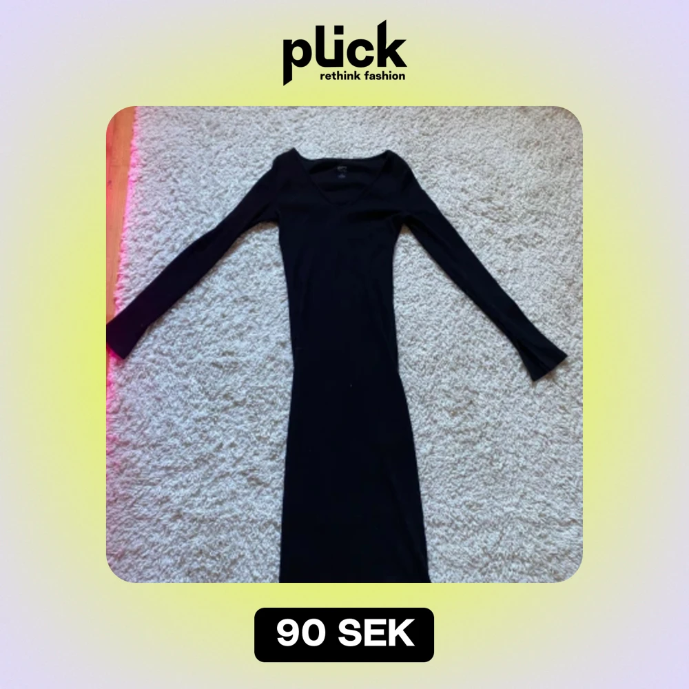 Storlek XS. Tajt lĂ„ng svart klĂ€nning med v-ringning. Inga skador och lĂ€tt ribbadđ