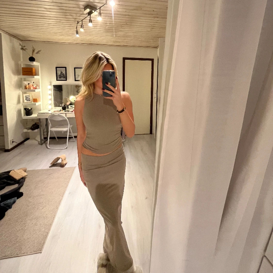 Beige sett med linne o lång kjol aldrig använt