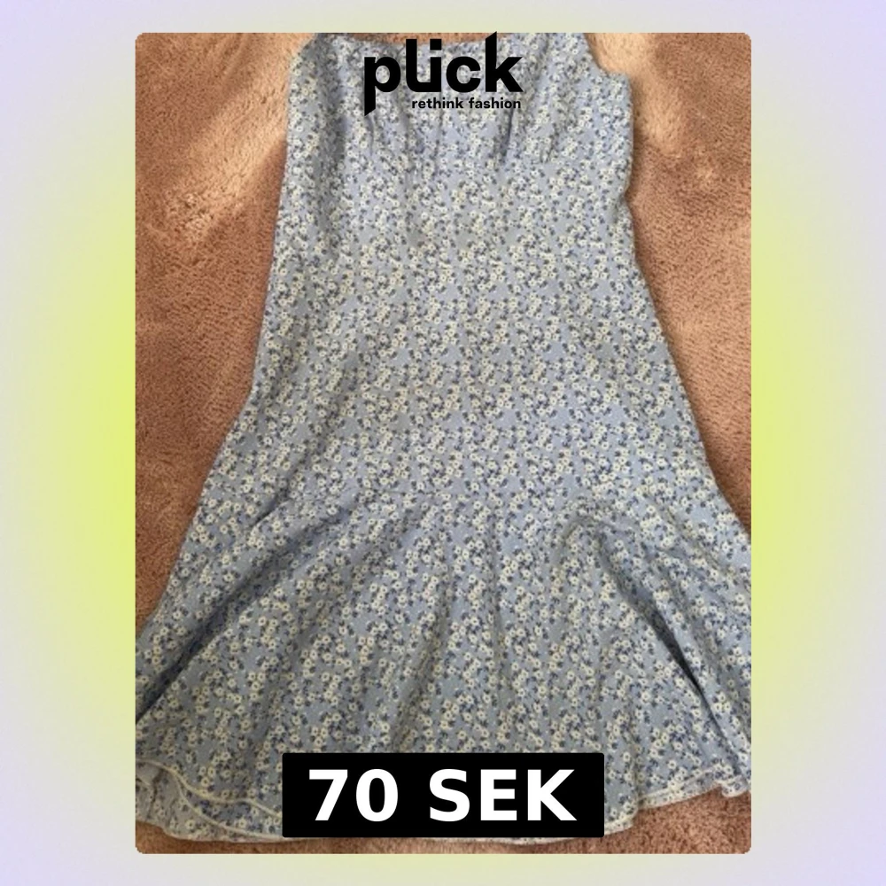 Söt blå klänning från Shein med smala axelband och blommigt mönster i vitt och blått. Klänningen har en lätt utsvängd form och är perfekt för varma dagar. Tillverkad i ett mjukt och lätt material.
