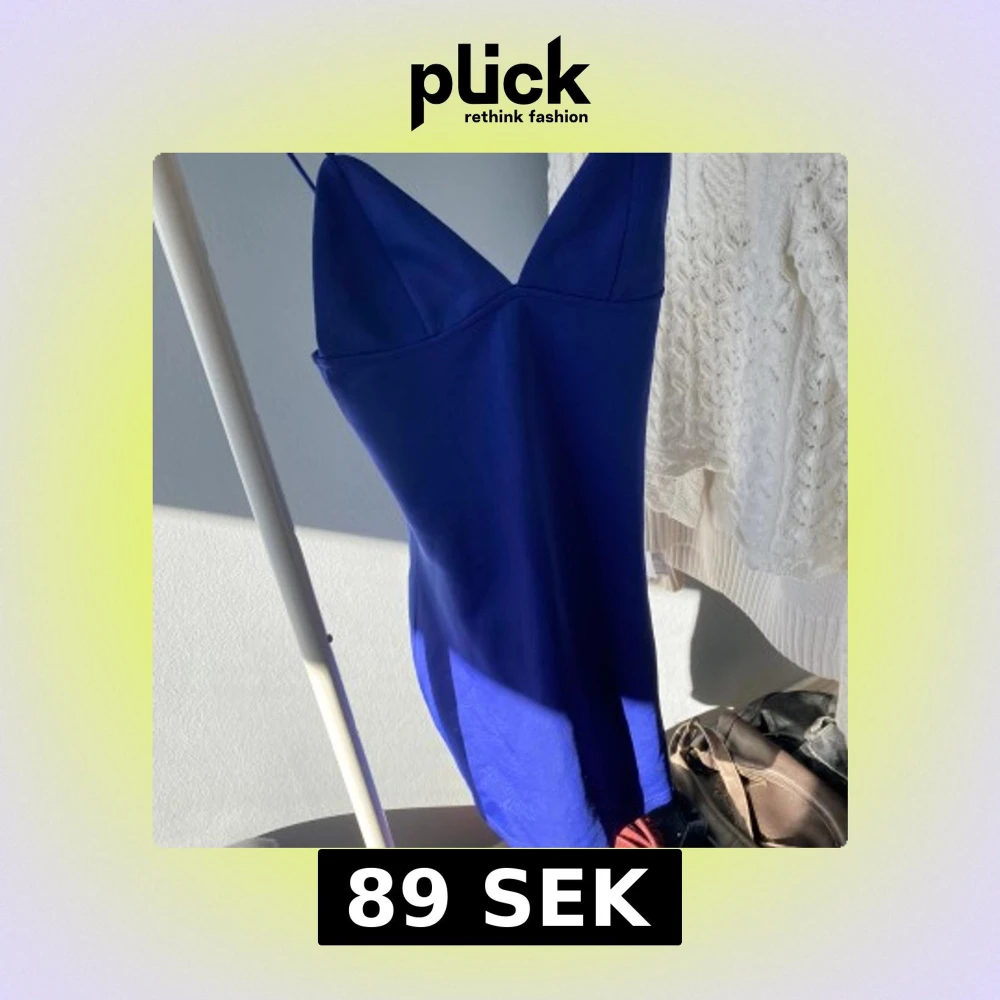 Snygg blå klänning med smala axelband och v-ringad design. Perfekt för en somrig dag eller en kväll ute. Klänningen har en elegant och enkel stil som gör den lätt att matcha med olika accessoarer. Kontakta för fler bilder🥰🥰