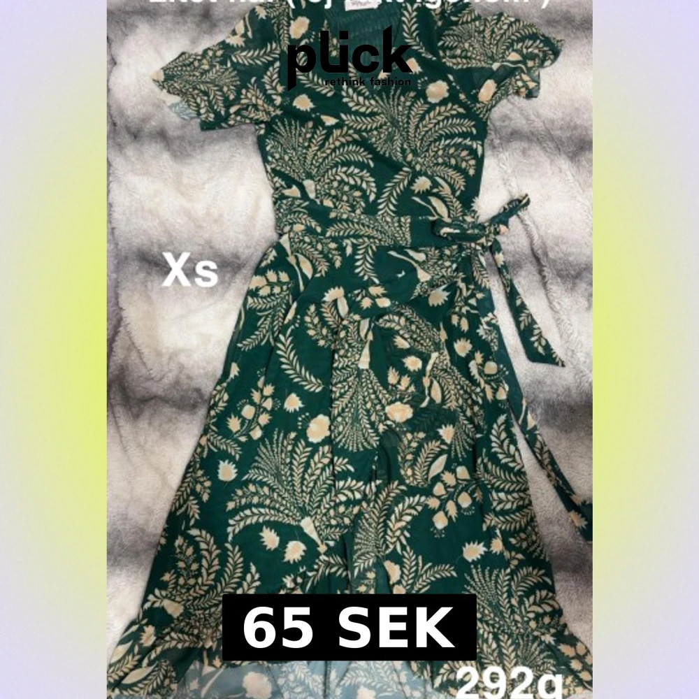 Supersöt grön omlottklänning från Soaked in Luxury med beige blommönster. Klänningen har volangdetaljer nertill, korta ärmar och knytband i midjan. Perfekt för dig som gillar en feminin och flowy stil.🌸 Litet hål i inre delen av tyget. Storlek xs