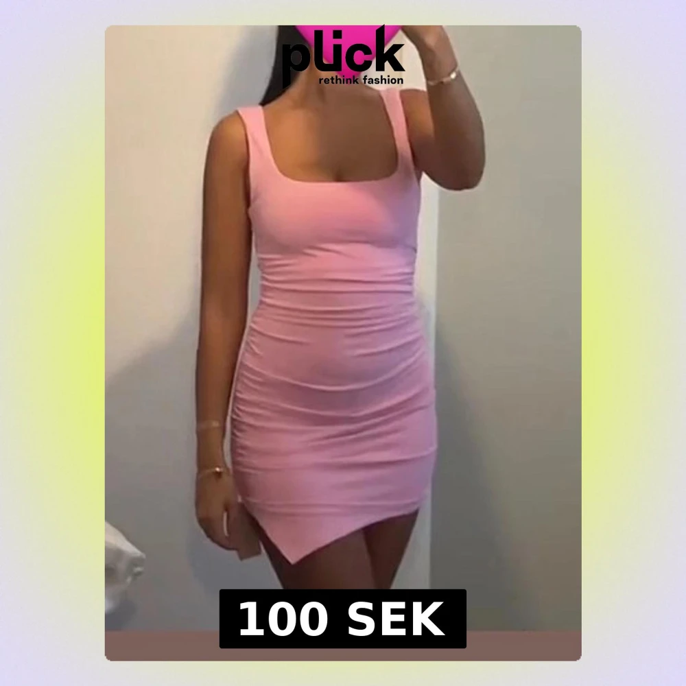 Supersnygg rosa kortklänning med tight passform och breda axelband. Klänningen har öppen rygg och en stor rosett bak, samt asymmetrisk nederkant. Perfekt för dig som vill sticka ut! Materialet känns stretchigt och följsamt.