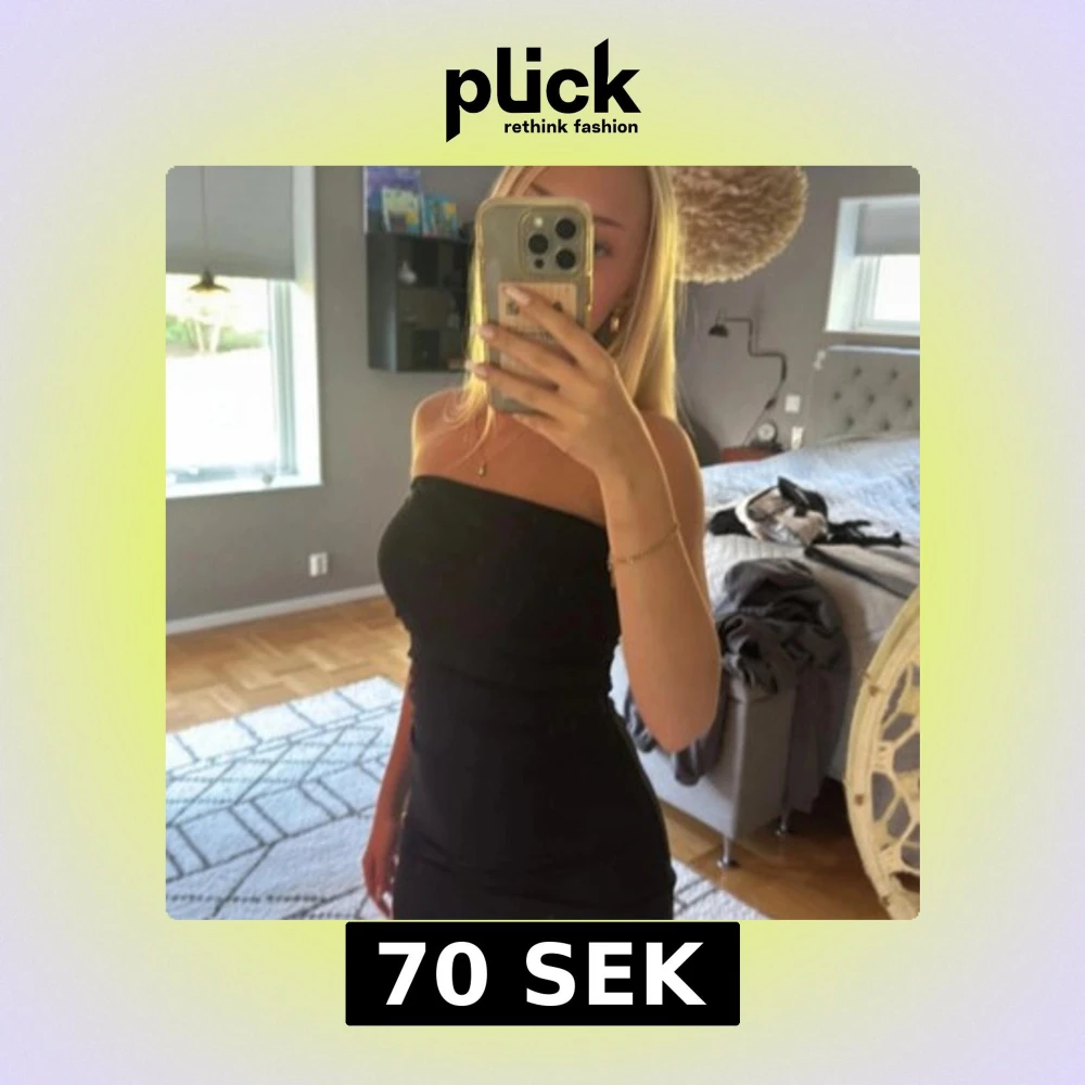 Säljer en svart, tight och axelbandslös kortklänning med snygg snörning i sidan. Klänningen har en figurnära passform och är perfekt för dig som gillar en stilren och enkel look. Materialet känns mjukt och stretchigt, vilket gör den superbekväm att bära.