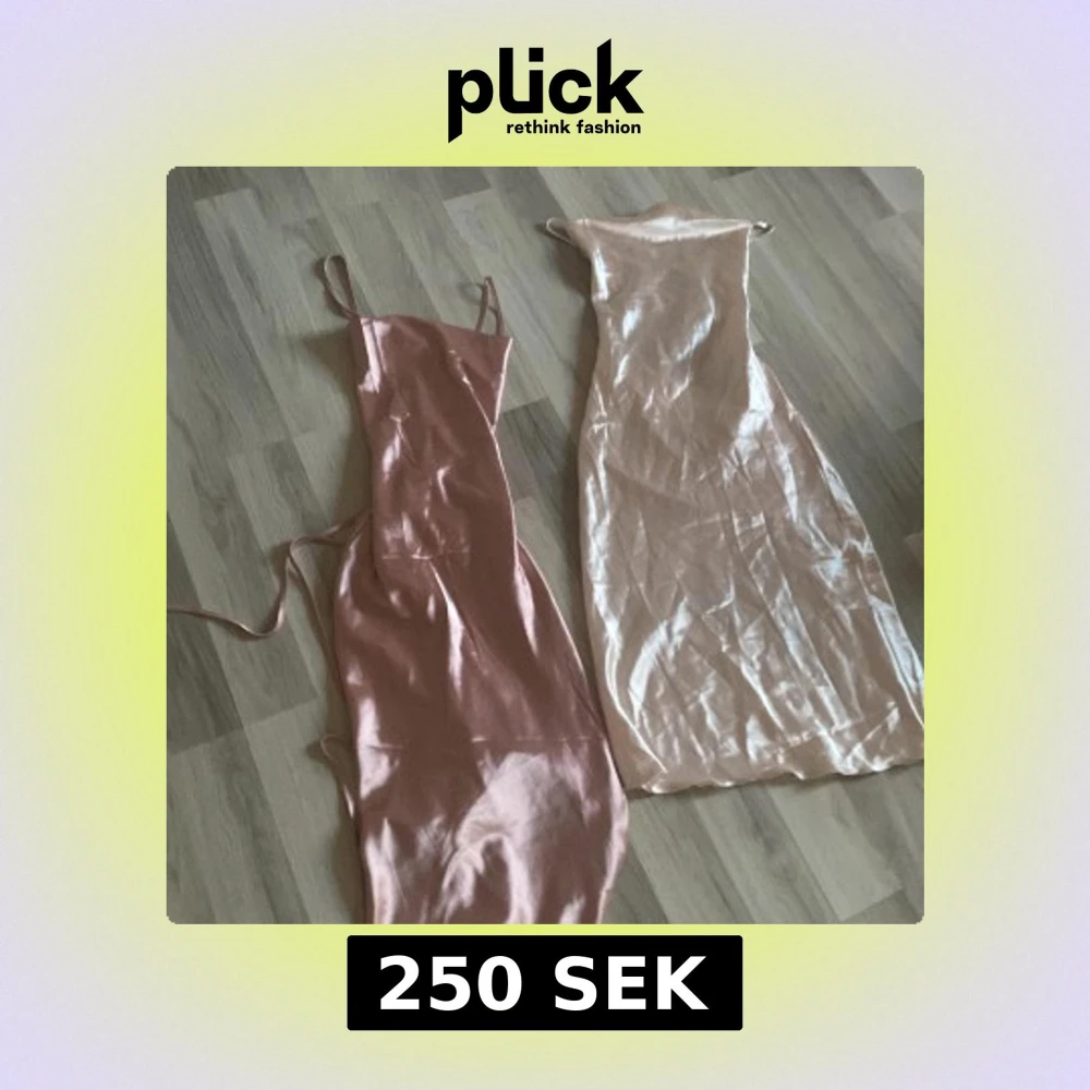 Säljer två eleganta långklänningar i siden, en i ljusrosa och en i champagne. Båda har smala axelband och en figurnära passform. Perfekta för festliga tillfällen! ✨