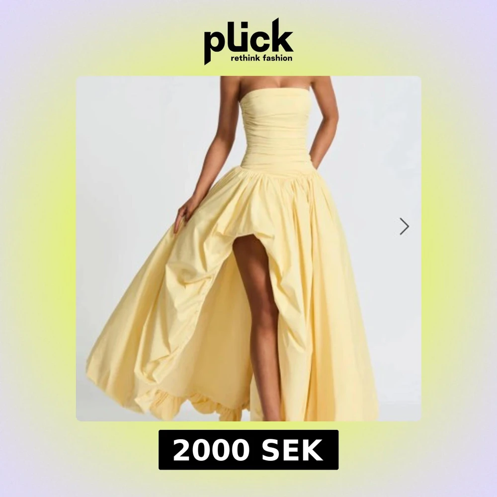 Superfin ljusgul långklänning med axelbandslös design och markerad midja. Klänningen har snörning i ryggen, draperad överdel och en dramatisk slits framtill. Kjolen är voluminös och ger en riktigt sagolik känsla. Perfekt för dig som vill sticka ut! nypris 2600 från babyboo
