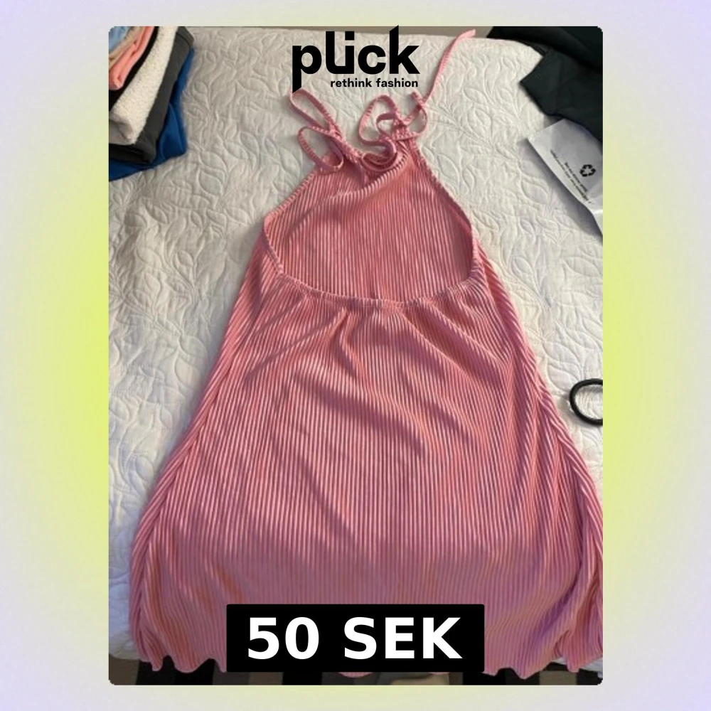 Säljer en söt rosa klänning med tunna vita ränder och smala axelband. Klänningen har en avslappnad passform och är tillverkad i ett mjukt, lätt tyg som passar perfekt för varma dagar. Den har en kort längd och ett enkelt, stilrent uttryck.