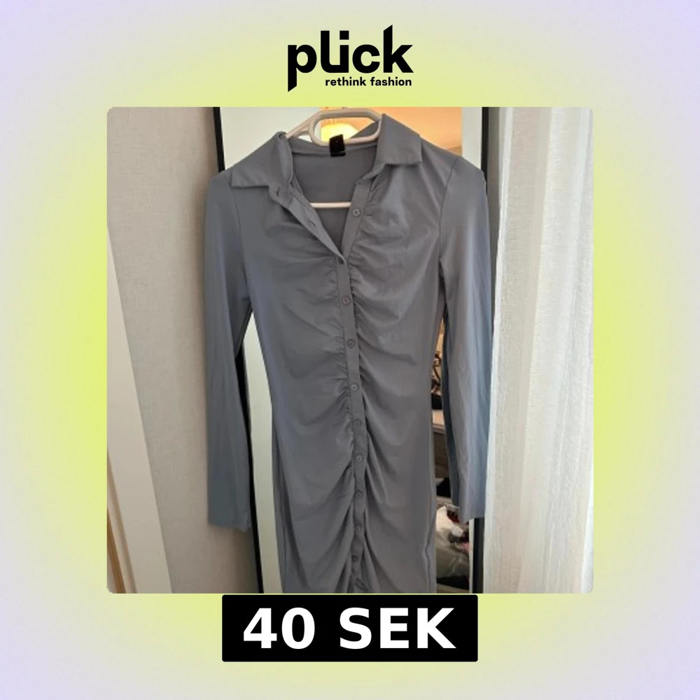 Snygg grå skjortklänning med långa ärmar och knappar hela vägen framtill. Klänningen har en rynkad effekt längs knappraden och klassisk krage. Perfekt för dig som gillar stilrena och trendiga plagg.