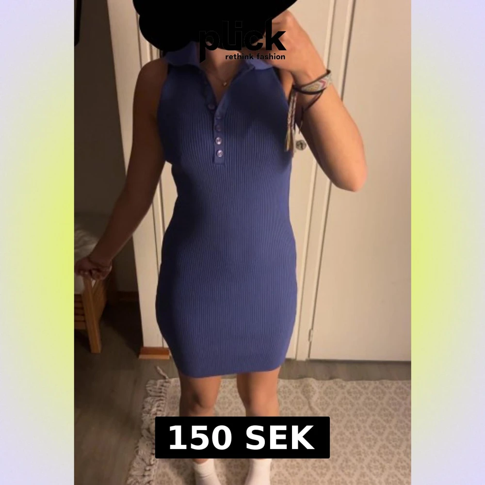 Säljer en blå, ribbad kortklänning från Sobea. Klänningen är ärmlös med krage och knappar framtill, vilket ger en sportig och trendig look. Materialet är stretchigt och figurnära, perfekt för dig som gillar en tight passform.