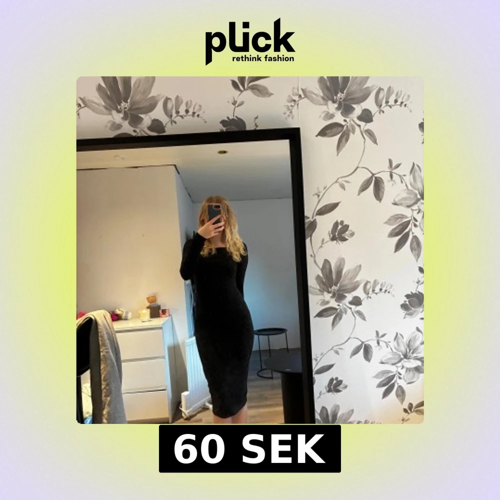 En stilren svart långärmad klänning med rund halsringning och figurnära passform. Klänningen är enkel och tidlös, perfekt för dig som gillar minimalistisk stil. Materialet känns mjukt och stretchigt, den går till knäna på mig som är 163☺️