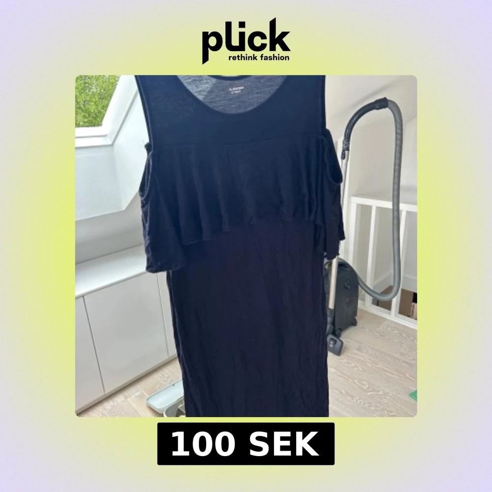 Svart ärmlös klänning från Calzedonia med volangdetalj över bröstet. Enkel och stilren design i mjukt material, perfekt för varma dagar eller att styla upp med accessoarer.