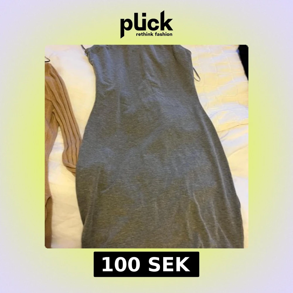Säljer en enkel och stilren grå klänning med smala axelband. Klänningen är tight och har en rak, kroppsnära passform. Perfekt för dig som gillar minimalistisk stil.